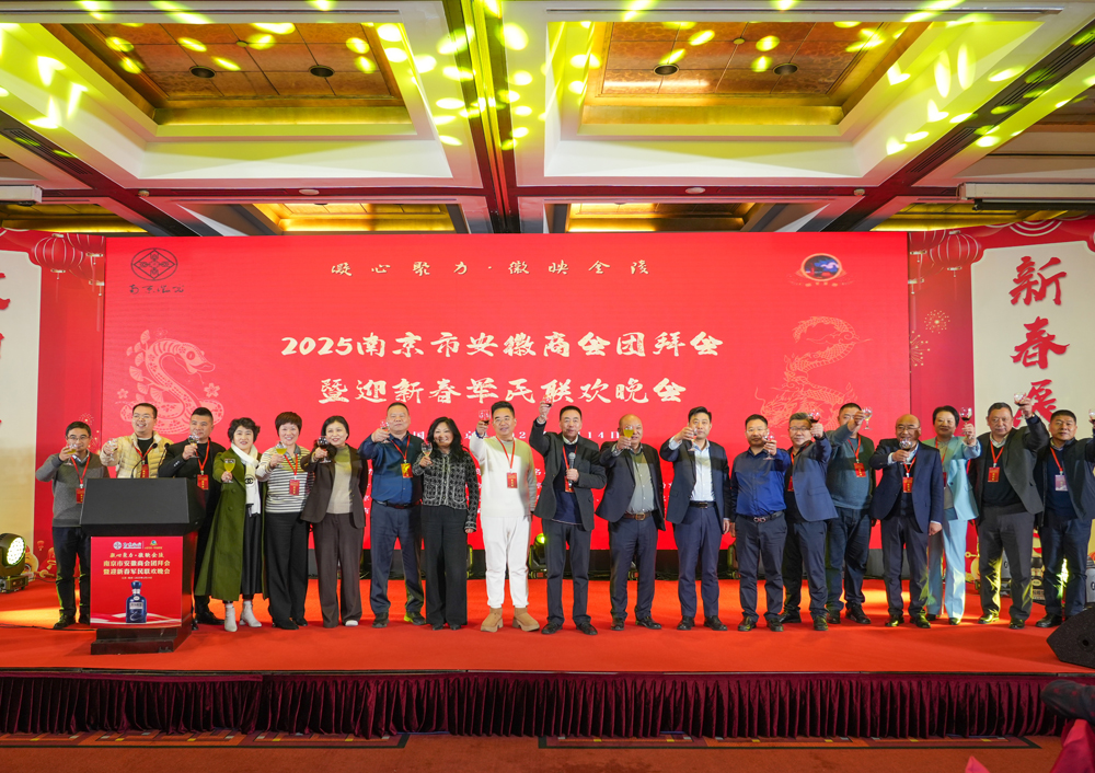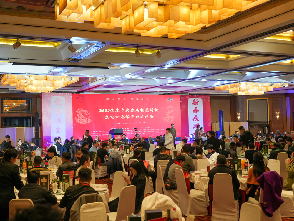 笔歌盛世龙蛇舞,春启锦程鸿鹄飞。回首2024峥嵘路,展望2025新征程。2025年1月14日,以“凝心聚力·徽映金陵”为主题的南京安徽商会2025年第一次理事会以及2025南京安徽商会团拜会暨迎新春军民联欢晚会在金陵饭店·钟山厅成功举办。军地老同志、南京市工商联领导、南京安徽商会领导班子及全体会员、南京徽商会长联盟成员及兄弟商会代表、新闻媒体及社会各界友人等三百人出席大会,共襄盛典。此次活动,军民心手相连,不仅凝聚了南京安徽商会的多方力量,更展现了徽商群体的蓬勃活力,进一步增进了军民之间的深厚情谊,加强了彼此的交流与合作,为构建和谐美好的社会氛围、促进地方繁荣发展贡献了积极力量。