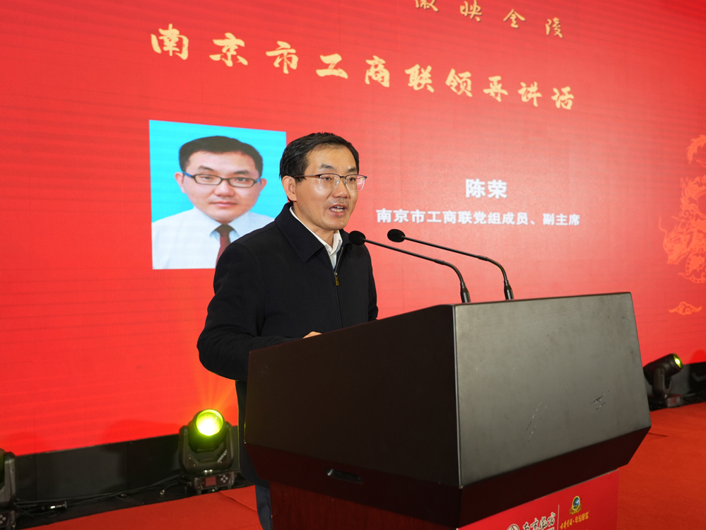 南京市工商联党组成员、副主席陈荣讲话。他强调,徽商组织要听党话、跟党走,将自身发展与党和人民的利益紧密相连,以振兴发展为目标,注重规范商会建设,加快推进现代化、专业化商会的建设步伐,共同书写商会发展的壮美篇章。