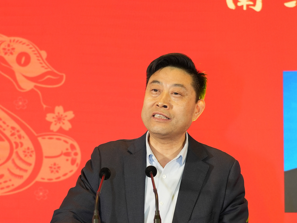 南京徽商会长联盟执行主席、南京淮南商会会长、南京捷顺达控股集团有限公司董事长吕德宝代表联盟发言,他满怀激情地展望新的一年,殷切期望南京安徽商会能够秉持团结、合作、创新等精神,在复杂多变的形势下迎难而上,以奋发昂扬的姿态砥砺前行,勇攀发展新高峰。他强调,商会要积极拓展合作领域,寻求更多发展机遇。尤其要重点做好以下几方面工作:一是加强党建引领,充分发挥党组织的战斗堡垒作用,确保商会发展方向与党和国家的方针政策高度契合;二是以党建为依托,推动商会高质量发展,提升整体竞争力;三是积极搭建平台,促进联盟企业之间的深入合作,实现资源共享、优势互补,携手共创更加辉煌的明天。