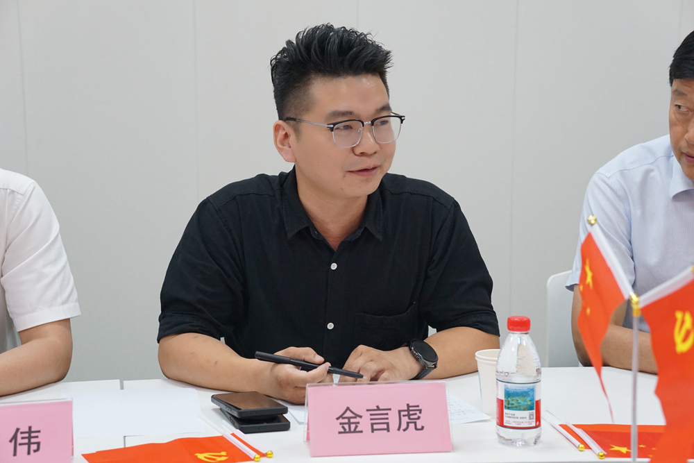 南京都市圈消防与防灾科技发展有限公司总经理金言虎分享了个人事业经历。他提到,在消防工作中,各单位、各部门之间的紧密合作至关重要,同时表达了希望入党的愿望。最后,他祝愿党支部不断发展壮大,发挥更强的战斗堡垒作用。